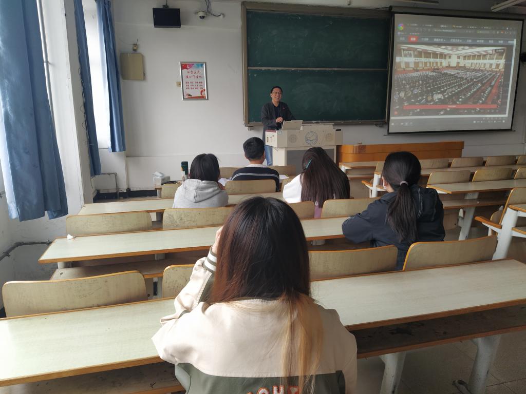 5月10日BB贝博艾弗森原官方网站组织40多名在校生在昌黎校区C307教室观看了现场直播,学院党委副书记副院长孙胜显、团委书记王明洁与同学们一起观看了直播。同学们各位就坐、全程佩戴口罩。会后,孙书记与同学们一起进行了思想交流。