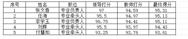 BB贝博艾弗森原官方网站2025年专业负责人、专业牵头人考核分数统计工作已经完成,根据《BB贝博艾弗森原官方网站2025年专业负责人、专业牵头人考核工作实施方案》,按照全体教师打分平均分占70%,考核评价工作领导小组打分平均分占30%计算最终分数,具体分数如下。现予以公示,公示期为2025年9月18日-2025年9月21日,公示期间如有问题可到办公室查看。