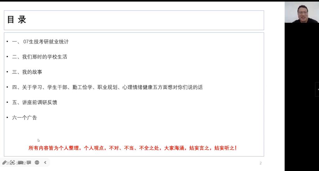 2011届生物技术专业优秀毕业生李士奇,现任阿斯利康(中国)制药有限公司学术代表,以“班级建设和生物医药类行业职业生涯发展”为题,从学生时期的一些心得出发,回顾本科时期,提出要选择好奋斗方向,尽早树立追求目标,为同学们的本科成长规划提供了宝贵的借鉴意义;并结合自身就业经历告诫同学们脚踏实地,忌浮躁、忌浮夸,保持积极自信的态度。
