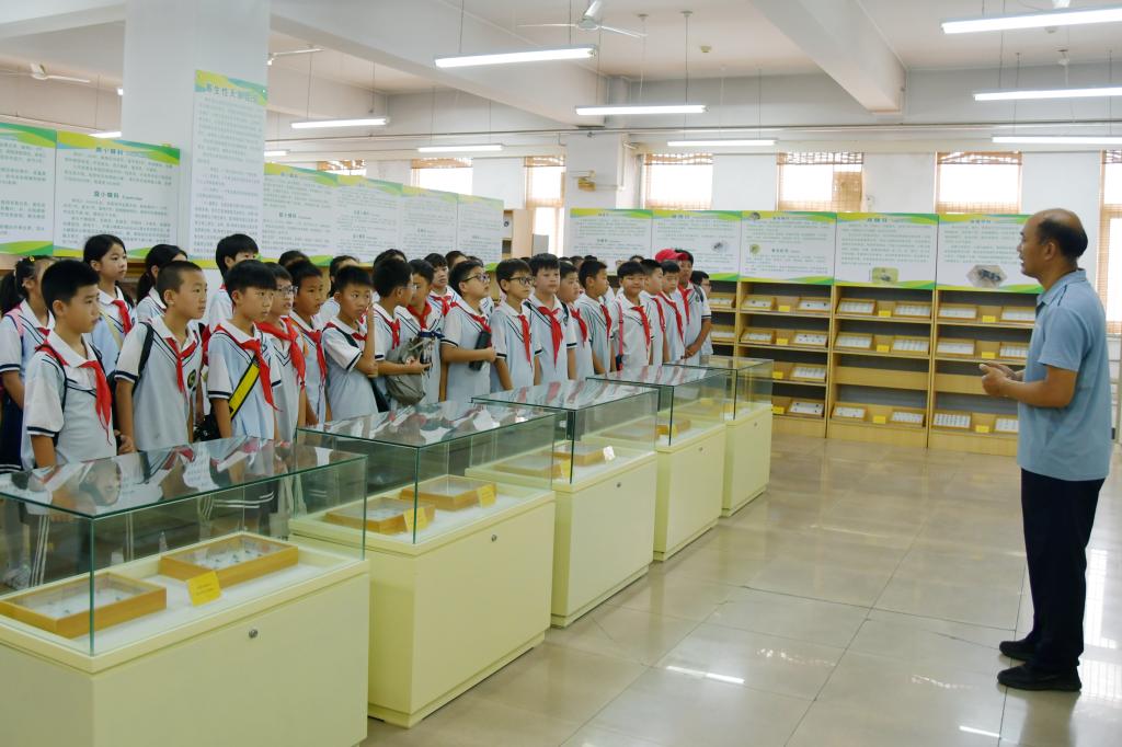 标本馆工作人员首先带领小学生们参观了秦皇岛昆虫图板科普展廊和冀东农林害虫天敌昆虫展厅。生动的昆虫科普图板和丰富多彩的昆虫标本引起了学生们极大的兴趣,他们纷纷顿足,积极交流,热情高涨,仿佛徜徉于广阔的大自然之中,学生们对生物防治、生态平衡和生物多样性保护等理念有了初步的认知。