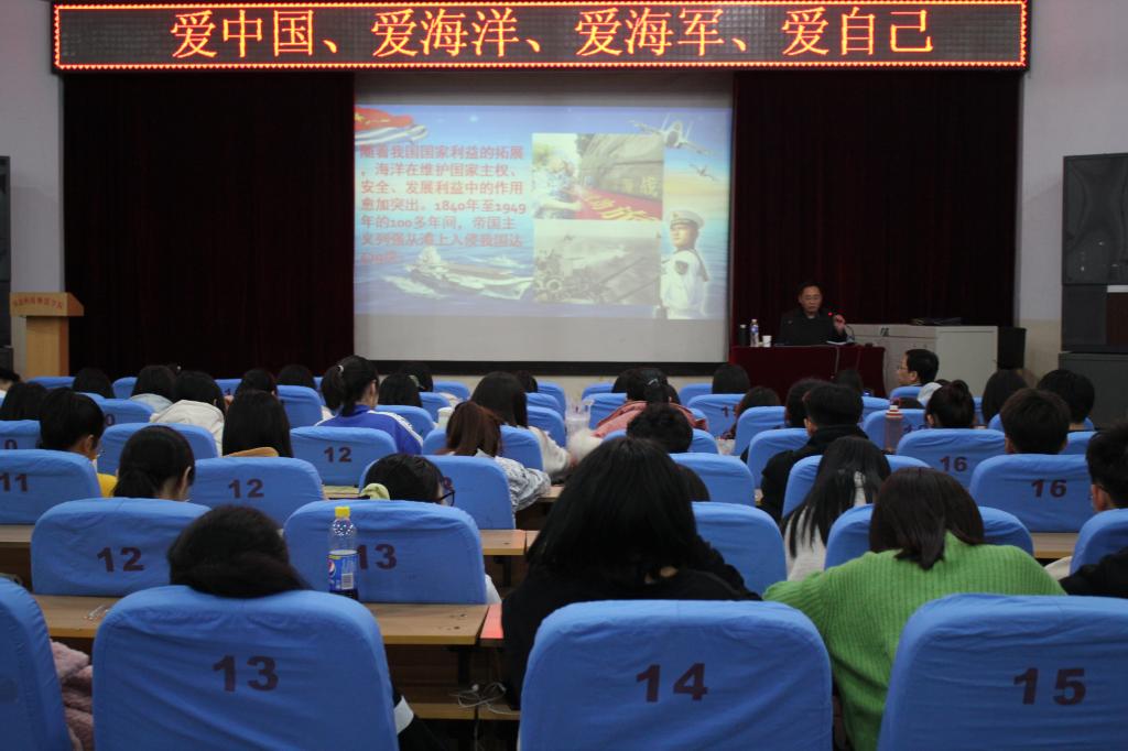 为了弘扬民族精神,增强学生的爱国意识与历史责任感,促进大学生对 “海洋强国”战略的认识,强化青年一代海洋权益观念。2020年11月14日BB贝博艾弗森原官方网站邀请秦皇岛市国防教育委员会专家、原海军某部上校白长河老师,在昌黎校区学术报告厅举办了一场“海洋强国”为主题的爱国主义教育报告会,贝博官网300余名师生聆听了报告。