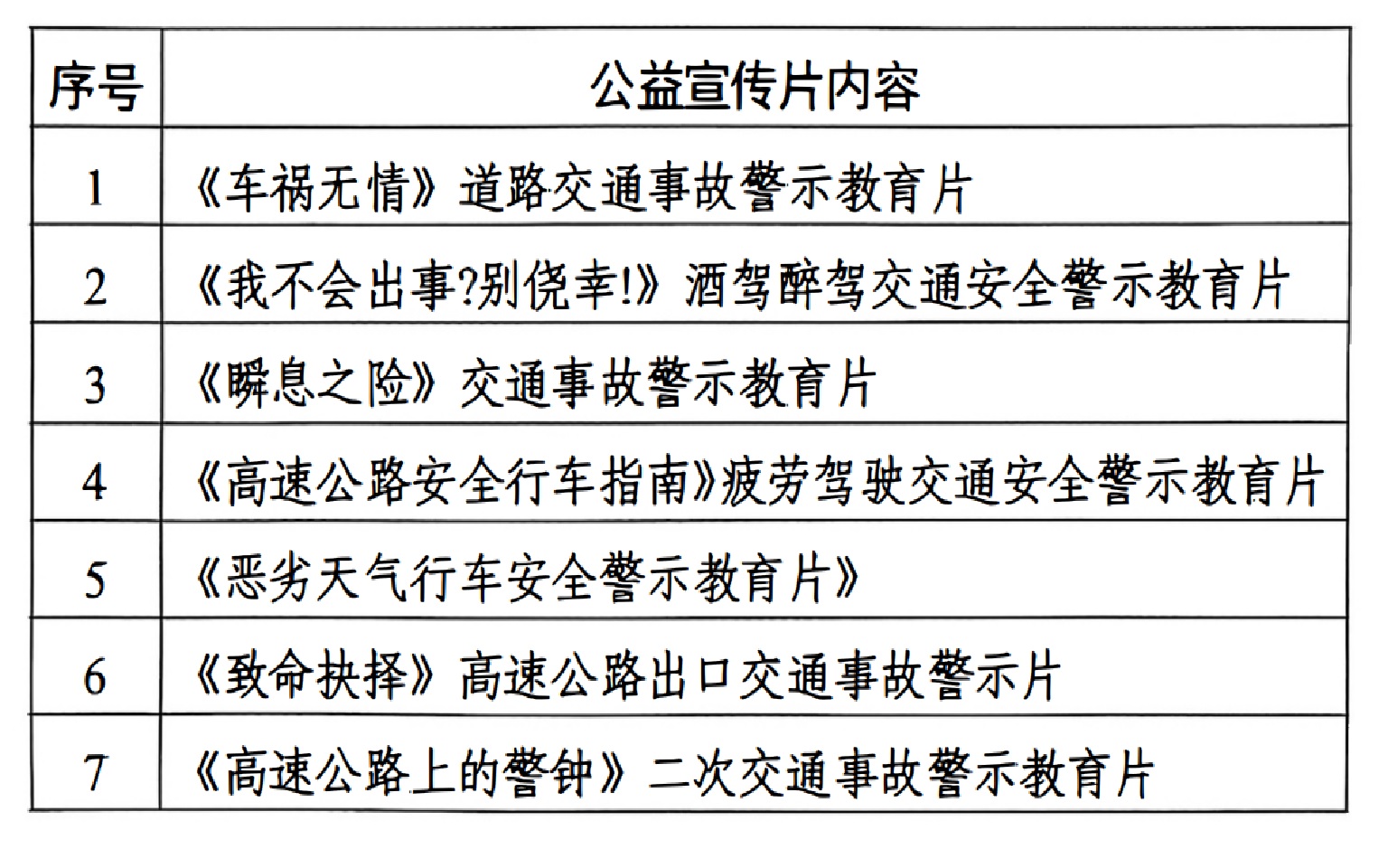 本次活动共安排7个公益宣传片,包含交通安全知识、酒后驾驶、疲劳驾驶、二次事故警示案例、高速交通安全等相关内容。